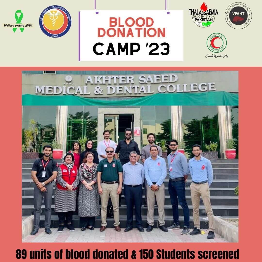 On September 01, 2023, a Hepatitis B & C screening camp was conducted by AMDC VFAHT in collaboration with IPAC, Thalassemia Society of Pakistan, Red Crescent Pakistan, and Welfare Society AMDC. The target population included the students and workers of AMDC and the purpose of the camp was to provide awareness and counselling to the individuals who were positive for both or either one of the diseases.