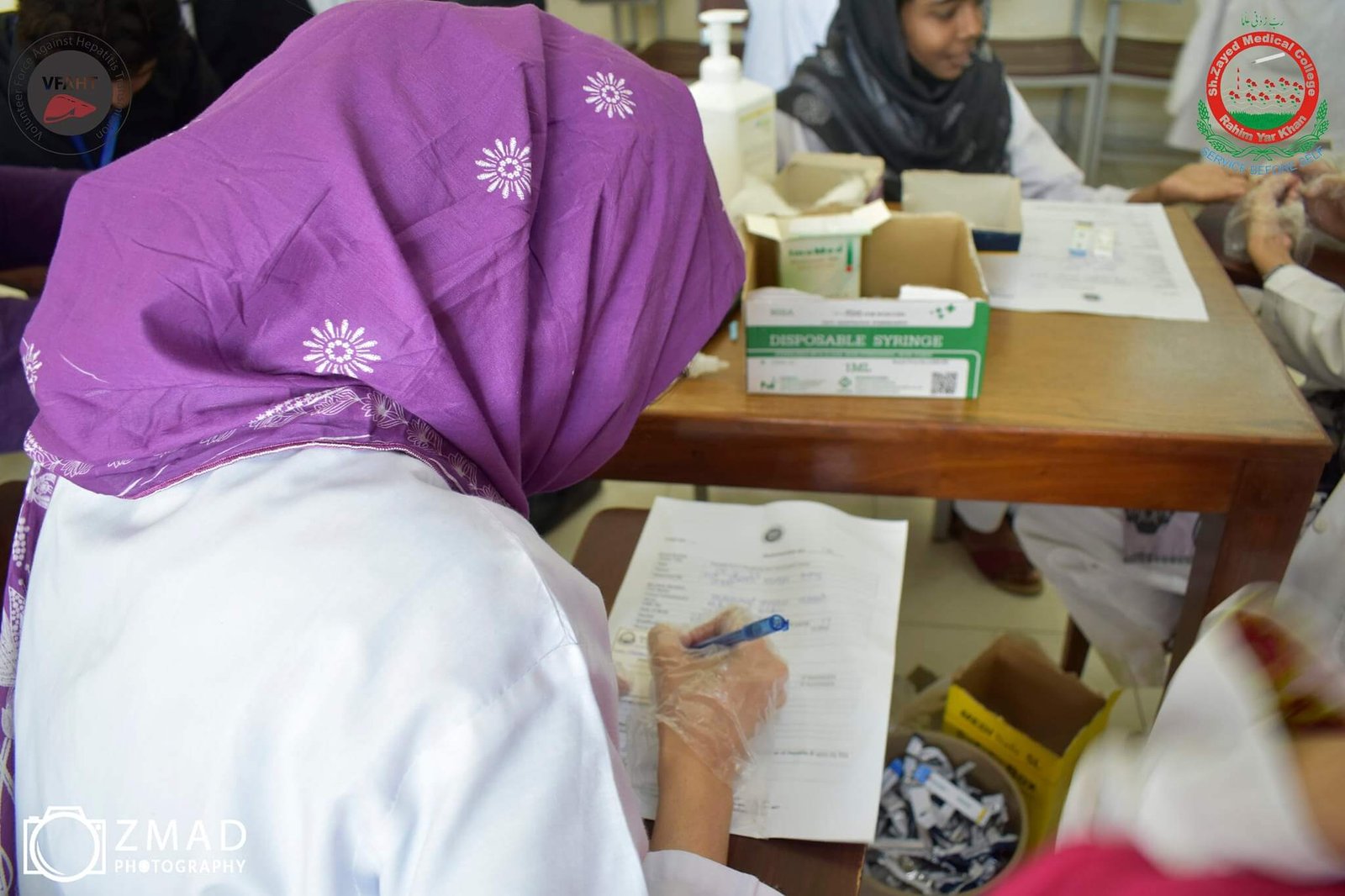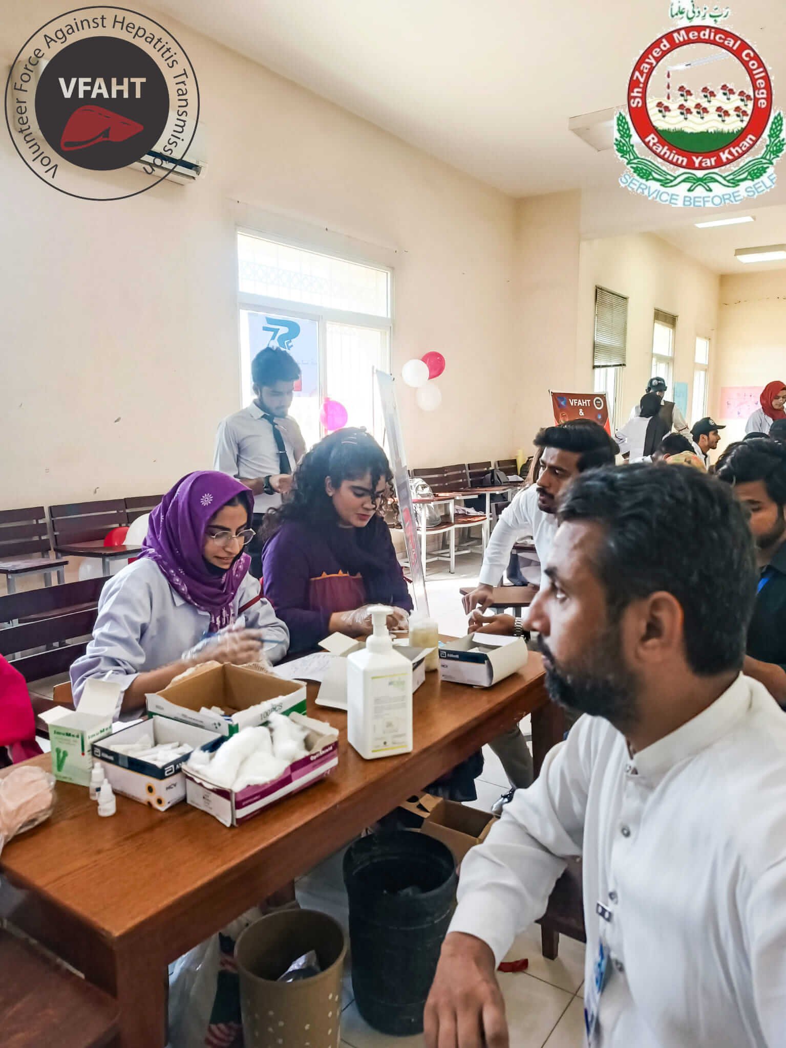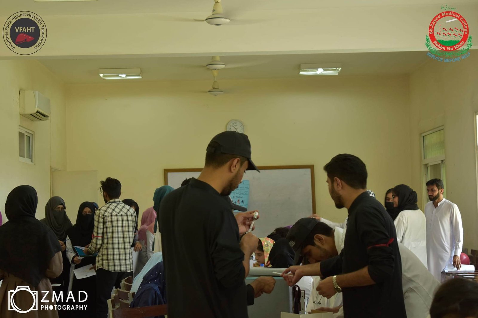 VFAHT-SZMC, in collaboration with IPAC Foundation, arranged a Hepatitis B & C and HIV Screening Camp at Sheikh Zayed Medical College and Sheikh Khalifa and H.H Sheikh Khalifa AHS Institute, Rahim Yar Khan on October 04, 2023. The audience was not only screened for Hepatitis B & C but were also counseled to address the general concerns regarding the causation and preventive measures of the diseases.