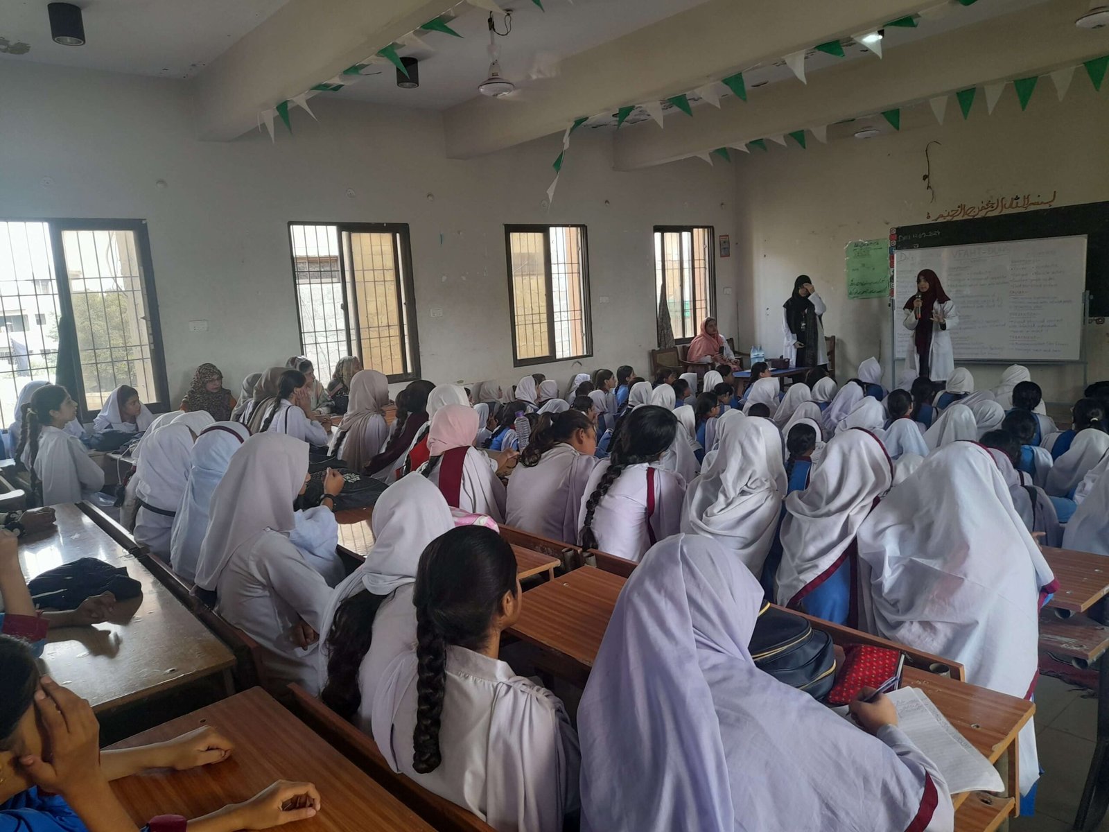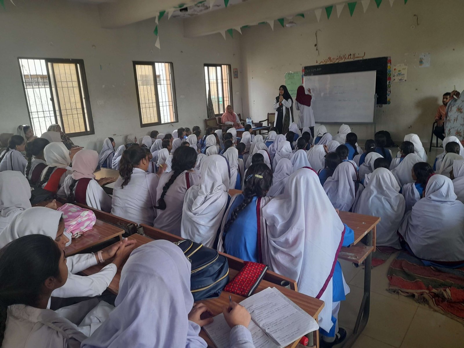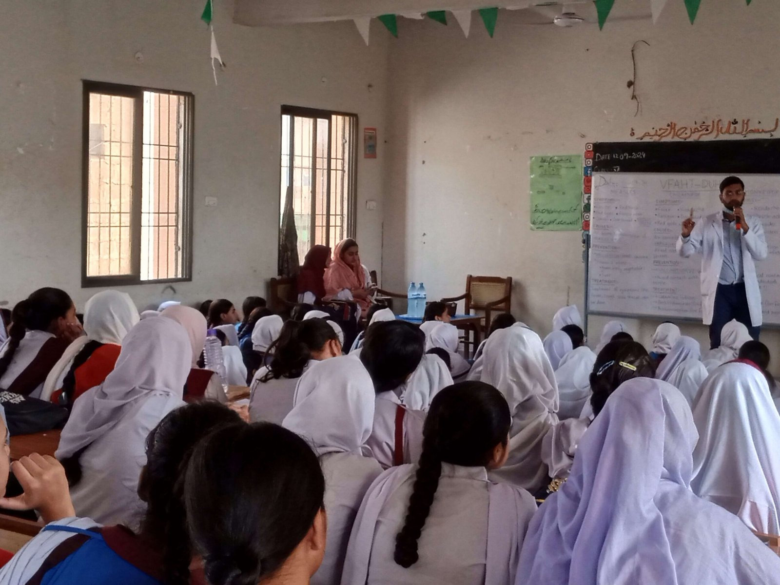 On September 12, 2024, VFAHT-DUHS conducted an engaging awareness session on infectious diseases at Govt. Boys & Girls School, Channesar Goth, Karachi. Volunteers educated students on infectious diseases such as mpox, chickenpox, and measles, focusing on their causes, symptoms, and prevention strategies.