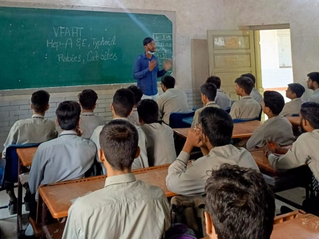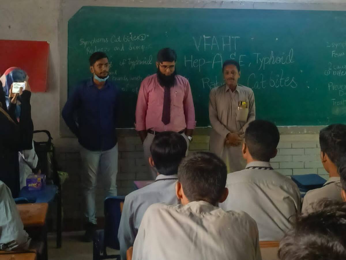 On September 11, 2024, VFAHT-DUHS conducted an impactful awareness session on Typhoid and Rabies at Kotwal School, Karachi. The session educated students about the causes, transmission, symptoms, prevention, and treatment of typhoid, as well as the risks and management of rabies and cat bites.