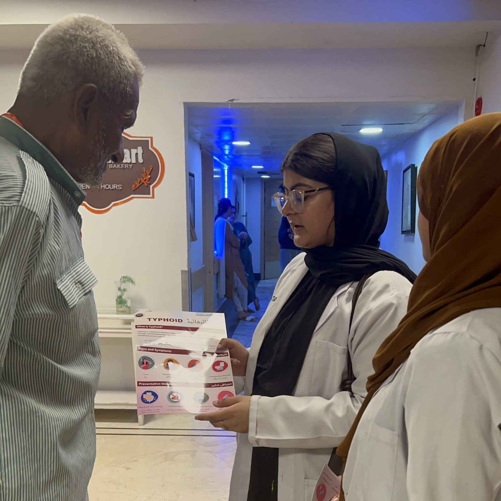 On July 18, 2024, VFAHT-ZU conducted a Typhoid Awareness Campaign at Ziauddin University, Karachi. Volunteers formed small groups and engaged with hospital and university staff, educating them about typhoid. The discussions focused on its symptoms, transmission, prevention, and treatment, fostering awareness within the community.